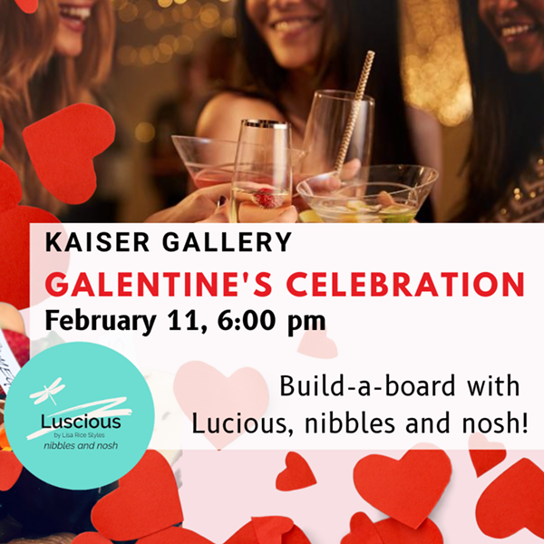 Join us at Kaiser Gallery for a delicious afternoon of fun with Lisa from Luscious, nibbles and nosh. She'll demonstrate different design techniques for creating an artisanal quality charcuterie board. Whether you come with friends or alone, we guarantee you'll have a great time! Everything you need is included to make & take your own charcuterie board home with you. Enjoy a complimentary cocktail or wine from Kaiser Gallery included in your ticket price.