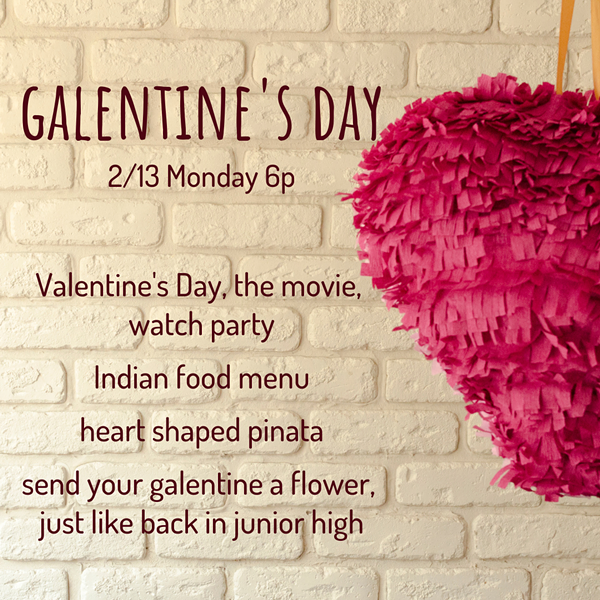 Join us as we recreate the iconic heart pinata scene from the movie "Valentine's Day"! Watch party, heart shaped pinata, and we're taking you back to your high school years by offering floral orders to have at your Galentine's seat.