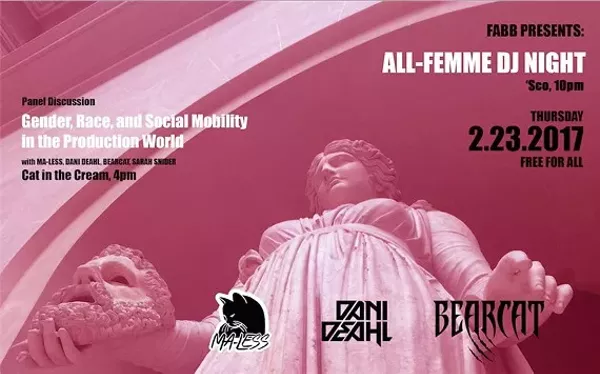 Due stereotypes society still clings to, women, let alone women of color, are rarely allowed to associate with any of the tropes attributed to the rap and production worlds. This imbalance falsely relates the quintessential qualities of rap and production ability with masculinity rather than skill, making it disproportionately hard for femmes in this area of the music world to get noticed. This panel, featuring 4 femme artists from both inside and outside our community, will explore how these stereotypes exist in our musical practices and how femme artists today are working to rise above and beyond.