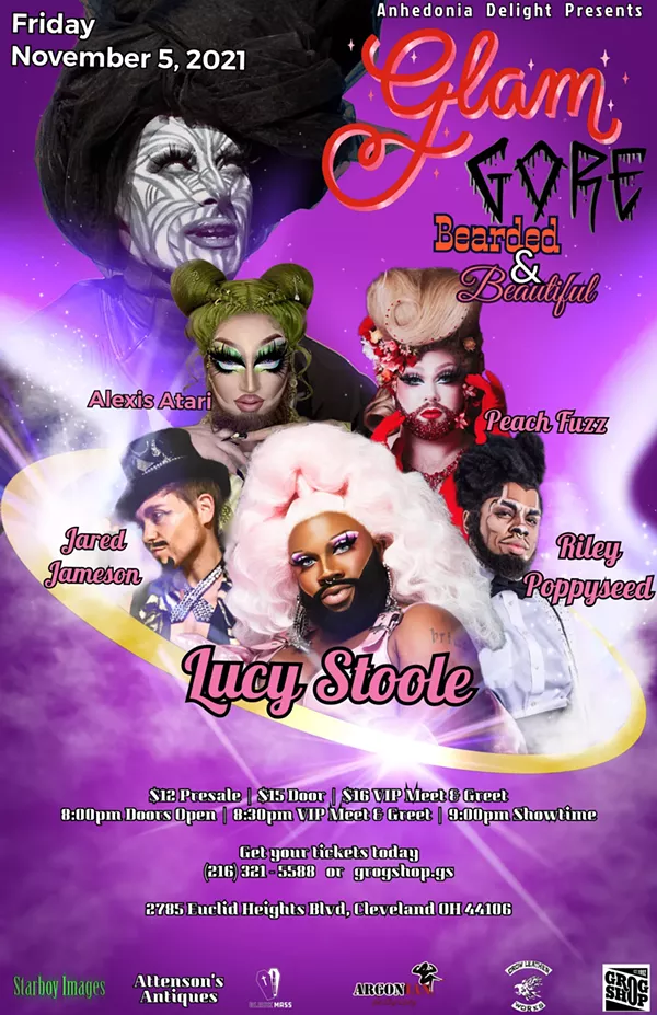 GlamGore is Cleveland's newest monthly addition to LGBTQ nightlife. Each month, GlamGore features a variety of performance artists under one roof, ranging from beauty queens to drag monsters. One of few all-inclusive and all ages productions that incorporates themed performances to elevate artists and audiences alike, GlamGore features well-rounded drag entertainers of all shapes, sizes and styles from all over the country. The theme of tonight's event, which starts at 9 at the Grog Shop, is Bearded & Beautiful. It'll feature a fabulous cast of bearded drag queens and drag kings of all shapes and sizes. Tickets cost $12 in advance, $15 at the door. VIP tickets which include a photo opportunity, a meet-and-greet prior to the show and seating, cost $16.