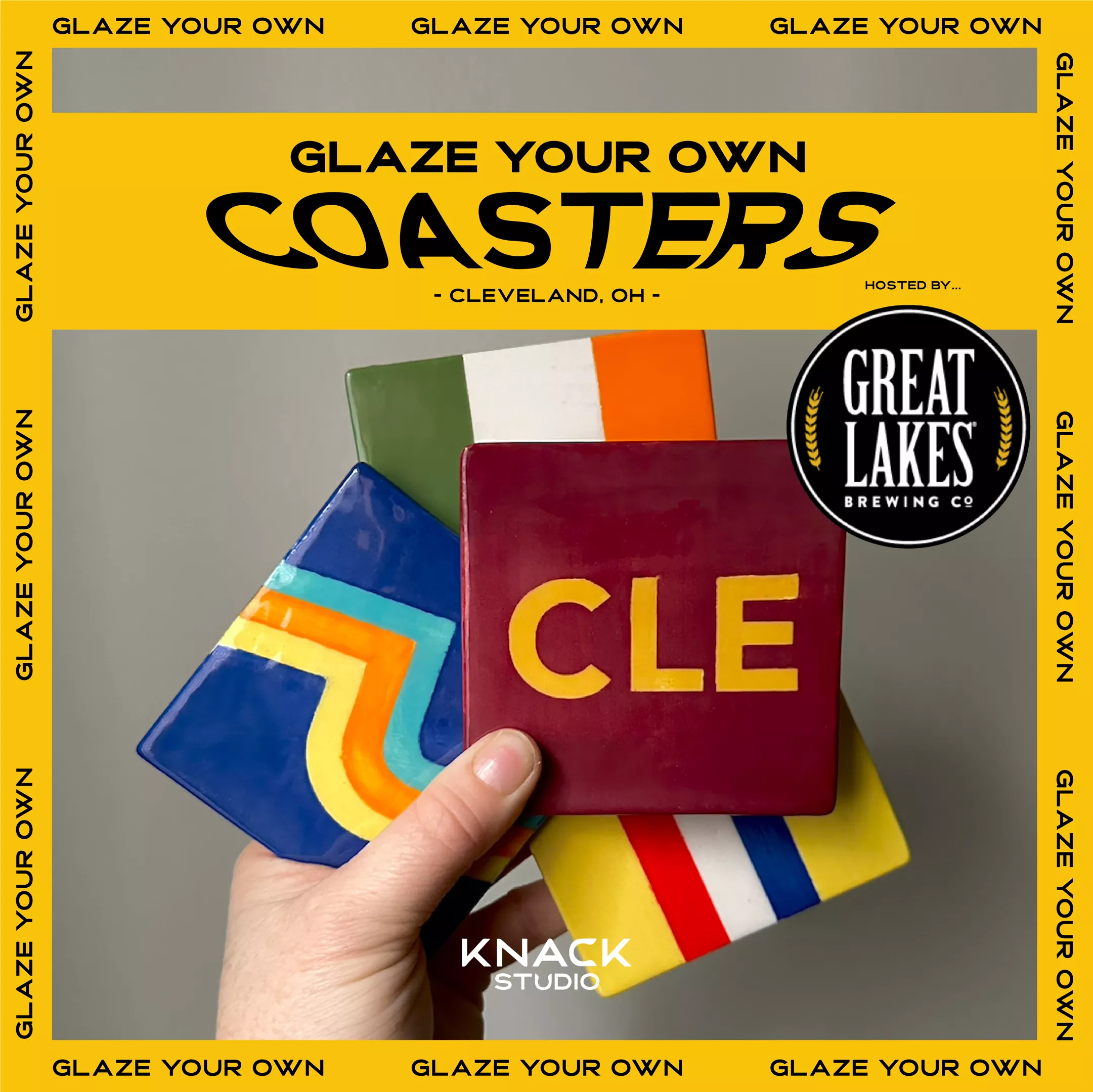 Join us at the brewpub for a Glaze Your Own Coasters workshop on Monday, February 24 from 6-8PM with Knack Studio from Savannah, GA.