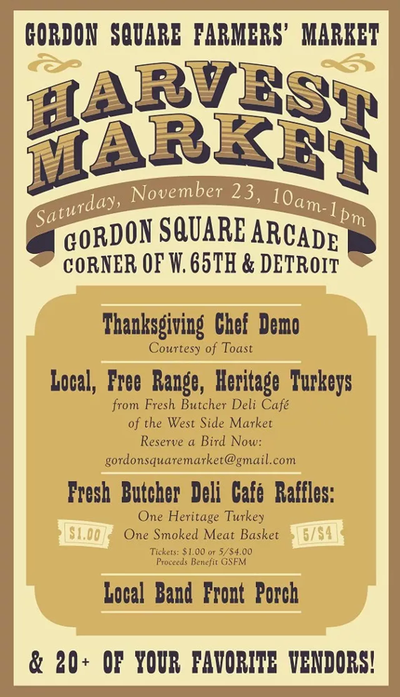 Gordon Square Farmers' Market is putting on a Harvest Market! Come and celebrate the Thanksgiving season with us at the Gordon Square Arcade! Vendors selling food, drink, and arts. Shop for extra treats for Thanksgiving dinner, stock up on produce for the week, find gifts for the holiday season, or just treat yourself!