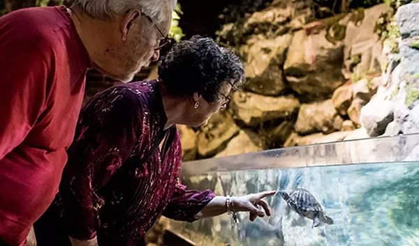 The Greater Cleveland Aquarium is offering 1 free admission for grandma or grandpa Friday, September 7 - Sunday, September 9, 10am – 5pm (last ticket sold at 4pm) with the purchase of one (1) child or adult general admission. In addition to the BOGO admission discount, on Grandparents Day and throughout that weekend, the first 50 grandparents receive a commemorative button. Families can complete an architecture scavenger hunt for a chance to win a 1-year Grandparents Annual Pass, and children can make a handcrafted fish thumbprint card to give to their grandparents.