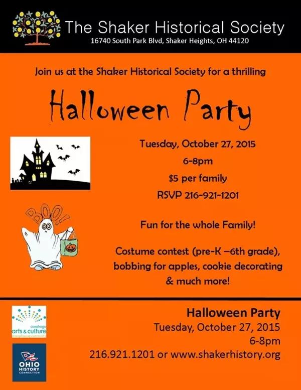 The Shaker Historical Society invites you to a Halloween Party on Tuesday, October 27th 6-8pm at the Shaker Historical Society.