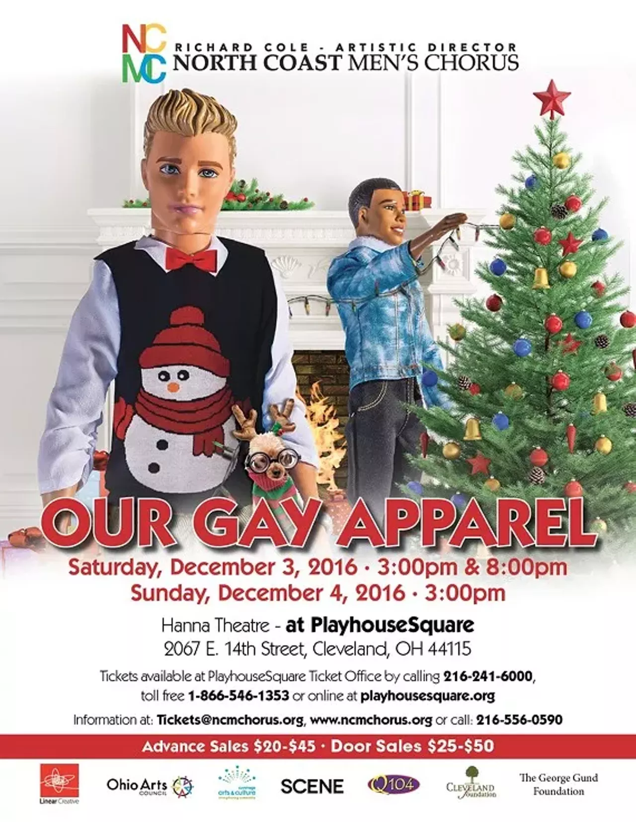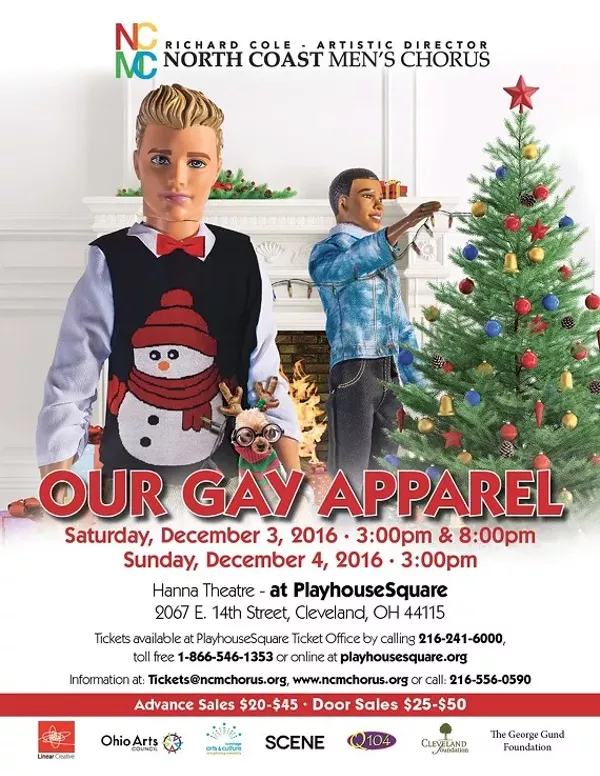 The North Coast Men’s Chorus is back at the Hanna Theatre at PlayhouseSquare with our multifaceted holiday concert – OUR GAY APPAREL. We will leave the stage – and your hearts – filled with ribbon, tinsel, and holiday cheer with songs of the season, outrageous dances, costumes and a warm glow that will keep you smiling all through the New Year, as only the NCMC can!