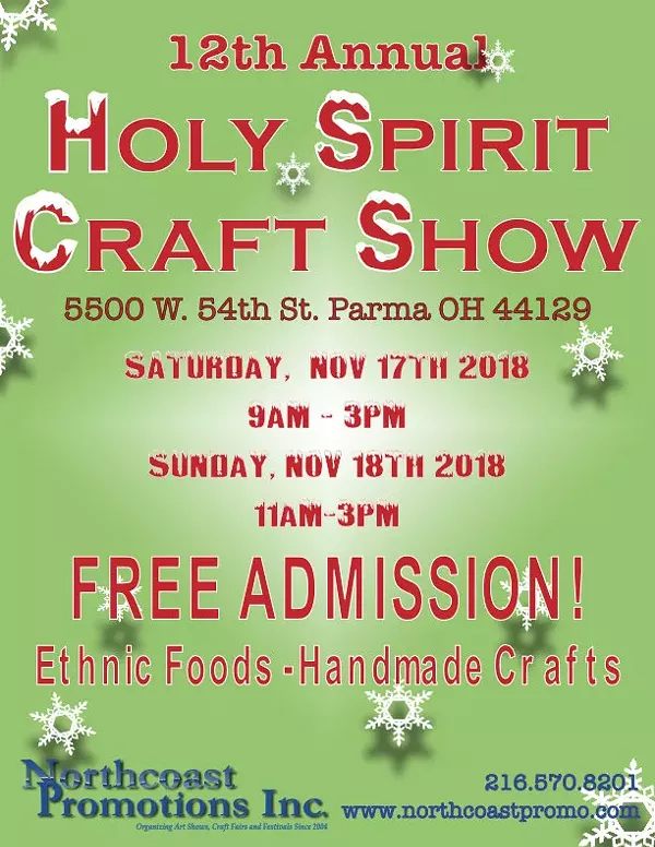 Free Admission! Fall & Christmas Holiday Shopping – 60+ local Handmade only Artist & Crafter booths featuring fashion apparel & home décor for the upcoming holidays. Baked Goods & Good European Ethnic Foods made by the Church for eat in or take out benefiting the church. Raffles for prizes too!