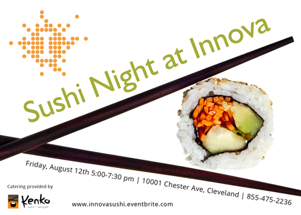 Innova Living & The Finch Group – University Circle invites you to join us for an all-you-can-eat Sushi Night! $15 per attendee includes sushi from Kenko and two complimentary drinks (your choice of beer or wine). Friday, August 12th from 5:00 - 7:30pm. We hope to see you there! www.InnovaLiving.com
