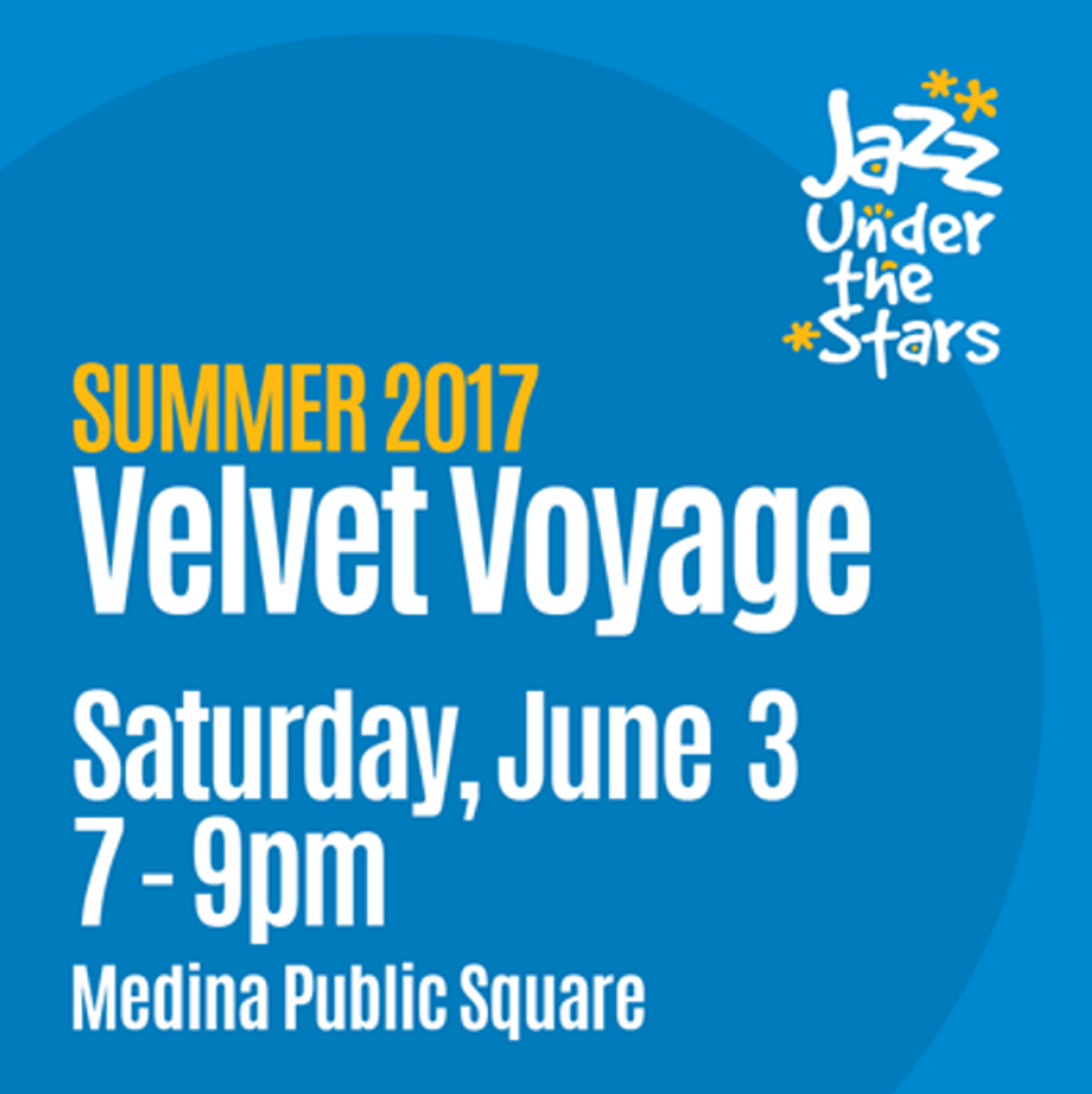 Ohio Regional Music Arts Cultural Outreach (ORMACO) opens the seventh season of Jazz Under the Stars with smooth jazz and blues by Velvet Voyage. The Cleveland-based group, regulars at Brothers Lounge, will perform original and classic jazz pieces, as well as their own versions of popular tunes. Uptown Park, Medina. FREE, 7pm. In the event of rain the performance will held at 217 East Liberty Street at United Church of Christ in Medina, OH 44256.