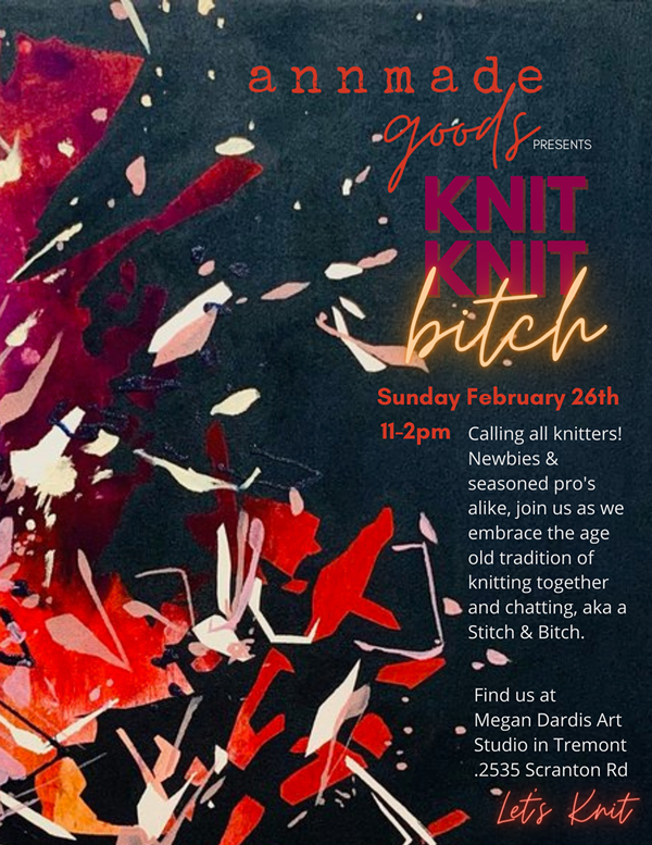 Calling all knitters! Newbies & seasoned pro's alike, join us as we embrace the age old tradition of knitting together and chatting, aka a Stitch & Bitch. Event is free!