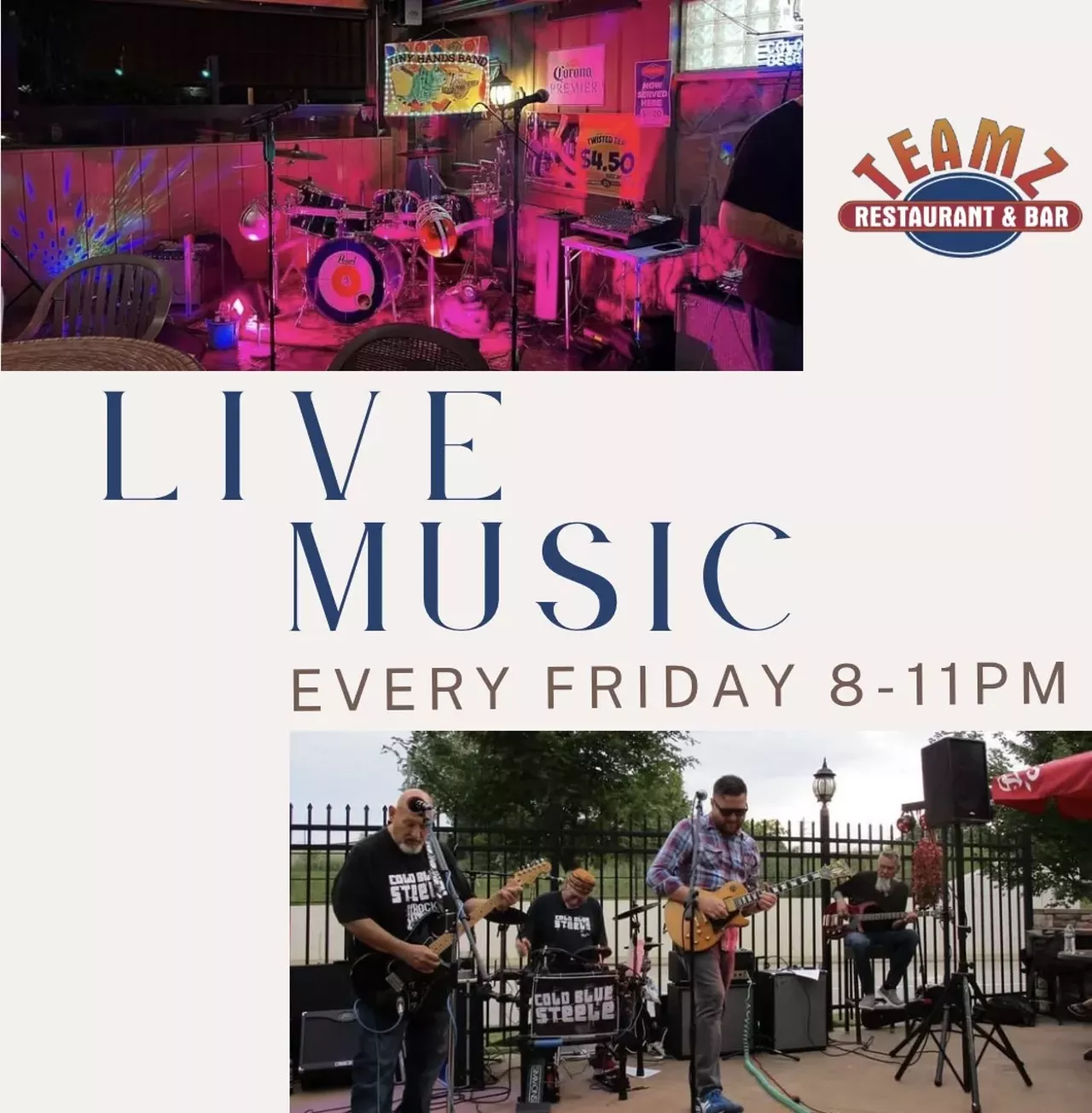 Live Music Every Friday Night at Teamz Restaurant & Bar 8-11pm on our outdoor patio!!
