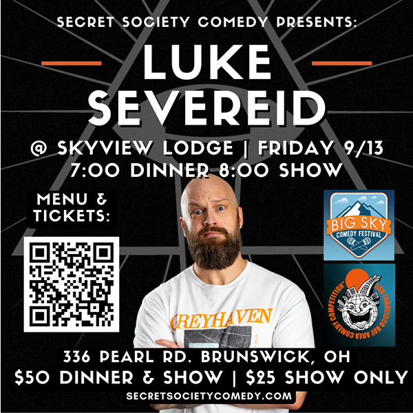 Cleveland's nomad comedy club pops up in Brunswick at Skyview Lodge for dinner and a comedy show with headliner Luke Severeid, a hilarious force to be reckoned with who headlines comedy clubs across the country and has millions of views on his videos, so if you've ever wanted to say "I saw him when," this is your when. Doors open and dinner is served at 7:00 PM, show at 8:00 PM. Tickets are $50 and include a dinner buffet and non-alcoholic beverages. Tickets for the show with no dinner are $25. Click the ticket link for the menu.