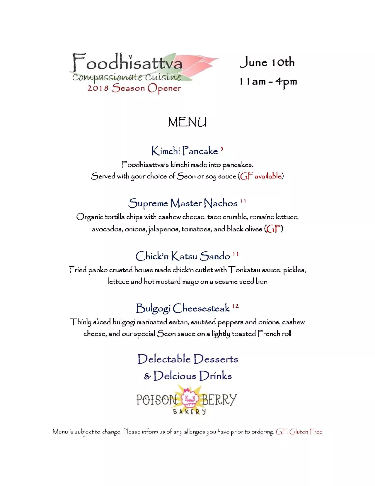 Poison Berry's wonderful array of drinks and desserts will also be available for your lunch feast!