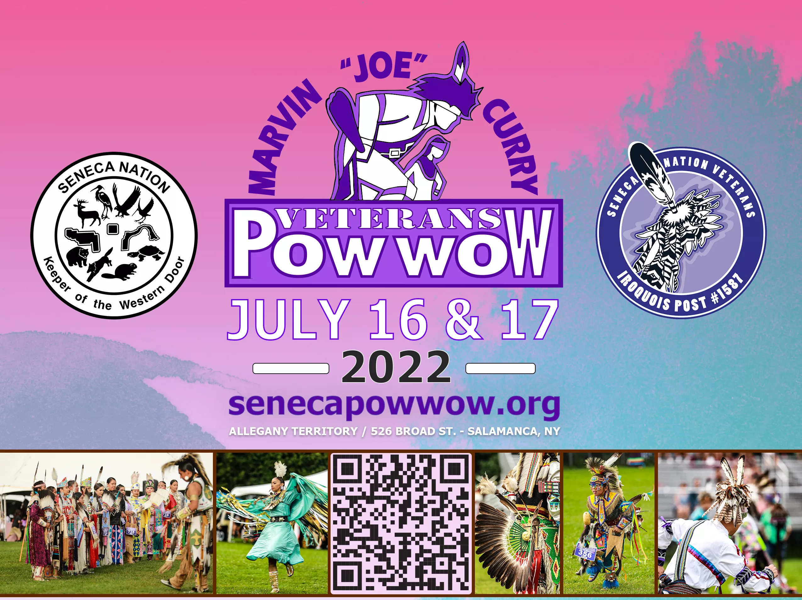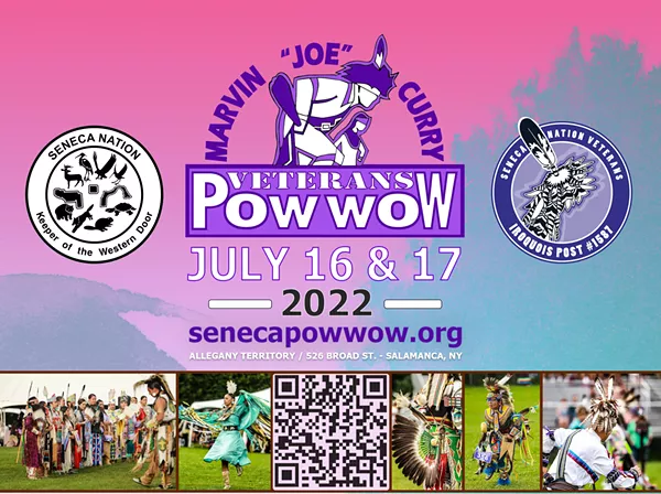 The Marvin "Joe" Curry Veterans PowWow is returning to the new and improved Veteran's Park. The PowWow showcases Native American dances from across Indian Country while focusing on the Smoke Dance of the Iroquois and honoring Native American Veterans. This PowWow weekend event is a perfect opportunity to experience the beauty of the First Nations through song, dance, art and traditional foods. The 2022 Seneca Veterans PowWow will be held July 16-17, 2022 at Veterans Park 526 Broad St.