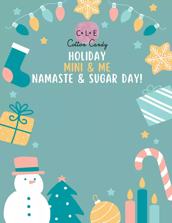 Join us at our holiday themed Mini & Me Namaste & Sugar Day event! Feeling festive? Get in the holiday spirit with our fun and festive workout with themed cotton candy treats to follow!