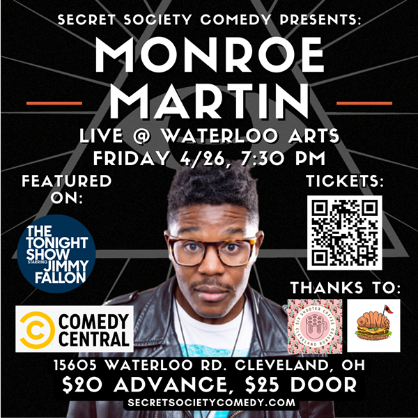Secret Society Comedy is proud to present headliner Monroe Martin, featured on The Tonight Show With Jimmy Fallon. Waterloo Arts is the perfect venue to attend a "secret" comedy show where you can celebrate life's wins, have a unique date night, check out local art, and break up the weekend routine to laugh the night away. Monroe is a rising talent in the NYC comedy scene as a regular performer at the Comedy Cellar, and has been featured on The Tonight Show With Jimmy Fallon, so if you've ever wanted to say, "I saw them 'when,'" this is your 'when.'