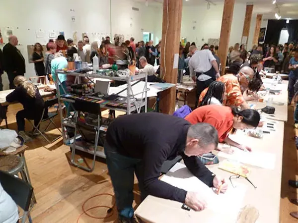 During the 7th annual Monster Drawing Rally, SPACES will turn artists' private studio practices into public performance. Over 100 of Cleveland's freshest artists will create new artworks on the spot, with materials provided by SPACES. When the drawings are completed, they will be hung on the walls for purchase at $75 each.