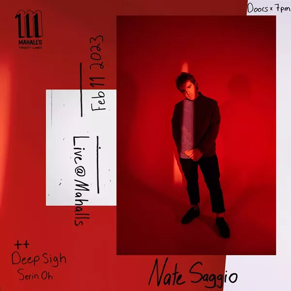Local singer-songwriter Nate Saggio celebrates the release of this new single, "White Picket Fences," a moody song that features crooning vocals and stuttering synths, with tonight's concert at Mahall's. The show begins at 8 p.m., and tickets cost $10 in advance, $12 at the door..