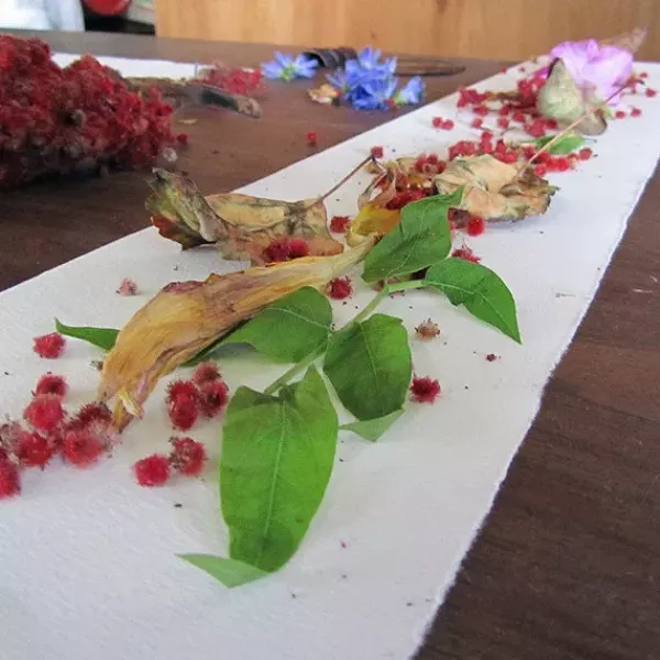 In this workshop, you will learn the fundamentals of contact ecoprinting to create beautiful, double-sided papers. Ecoprinting is the process of cooking bundled paper together with mordants and gathered plant material as the source of pigmentation and it reveals some of the most breathtaking and unexpected colors and designs. You can expect to make a passel of papers to take home and use in your book and paper projects.