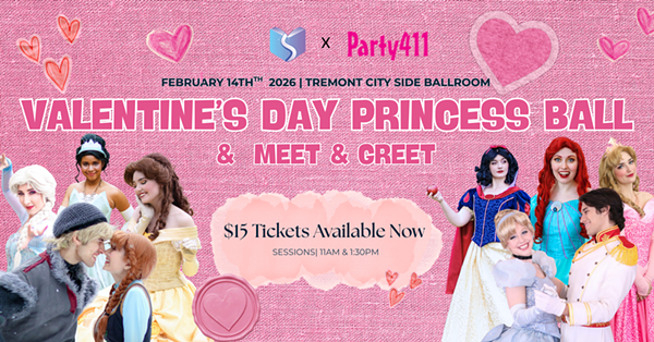 Get ready for an enchanting day brought to you by Spectacular Performances & Events and Party411. This spectacular Valentine's Day Princess Ball will be held at Tremont City Side Ballroom located at 2187 W 14th Street in Cleveland! We offer two magical 90-minute General Admission sessions for $15 per person in your party. Meet, interact and take photos with ten beloved princesses and characters. Secure your tickets now via Ticketspice for a magical Valentine's experience the whole family will love