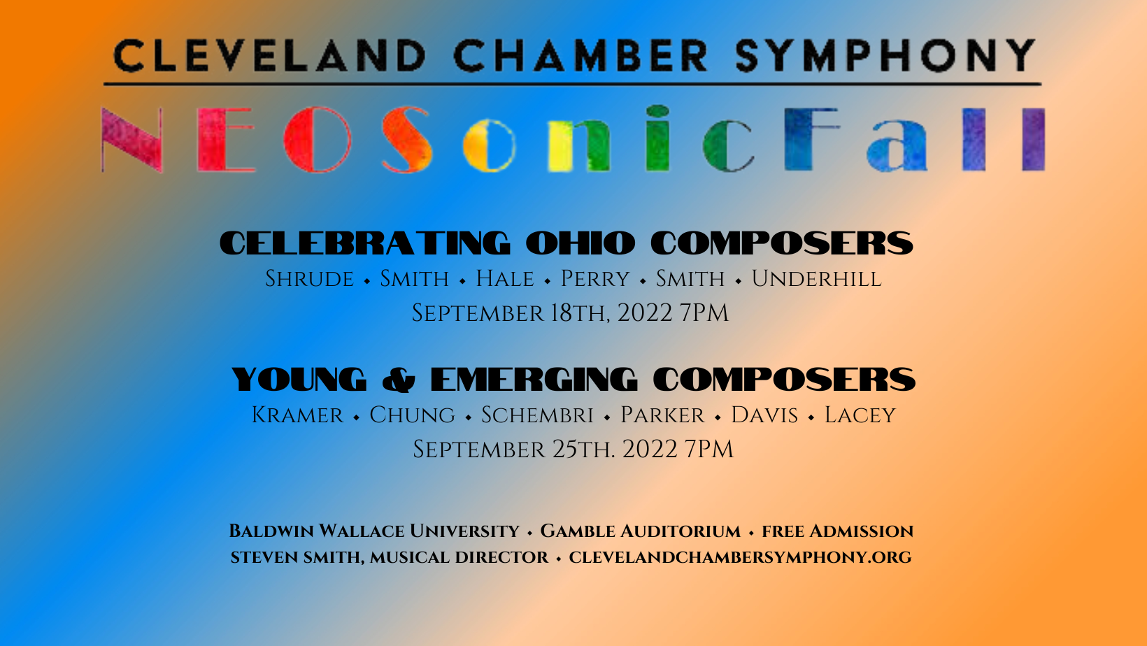 The Cleveland Chamber Symphony is pleased to announce NEOSonicFall, an extension of the annual NEOSonicFest traditionally held each Spring and sponsored by CCS.