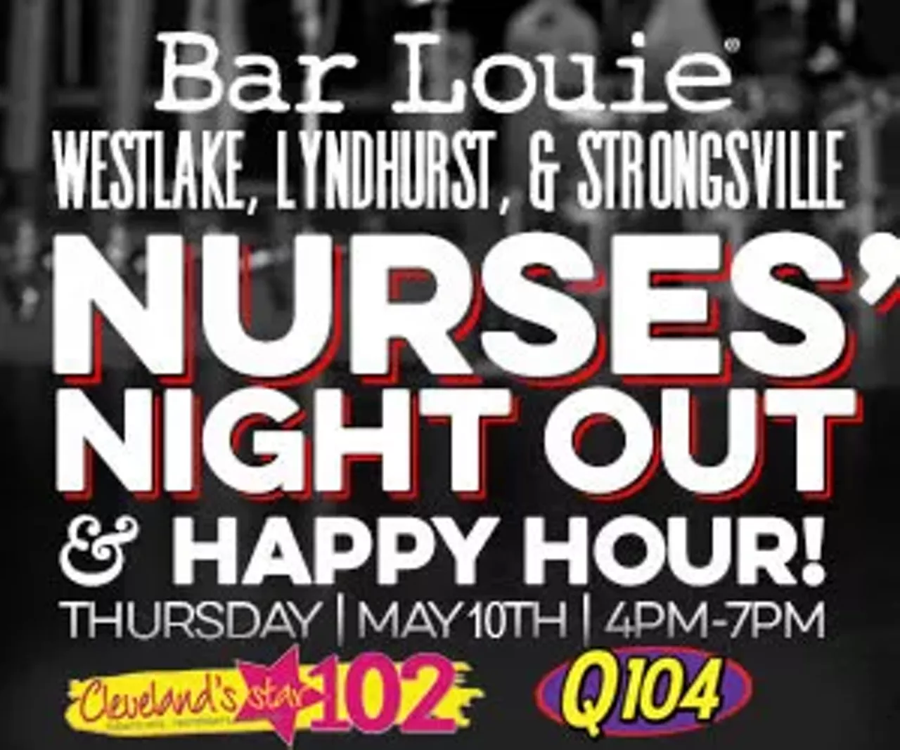 To support National Nurses Week, Q104 and Cleveland's Star 102, along with Cleveland Clinic, want to take care of those who take care of us by celebrating at Bar Louie on the east, west and south side Thursday, May 10th 2018 from 4 PM until 7 PM! For one evening, hosted by Q104's and Star 102 DJ's, our hardworking health care employees can let their hair down and enjoy a special happy hour just for you.