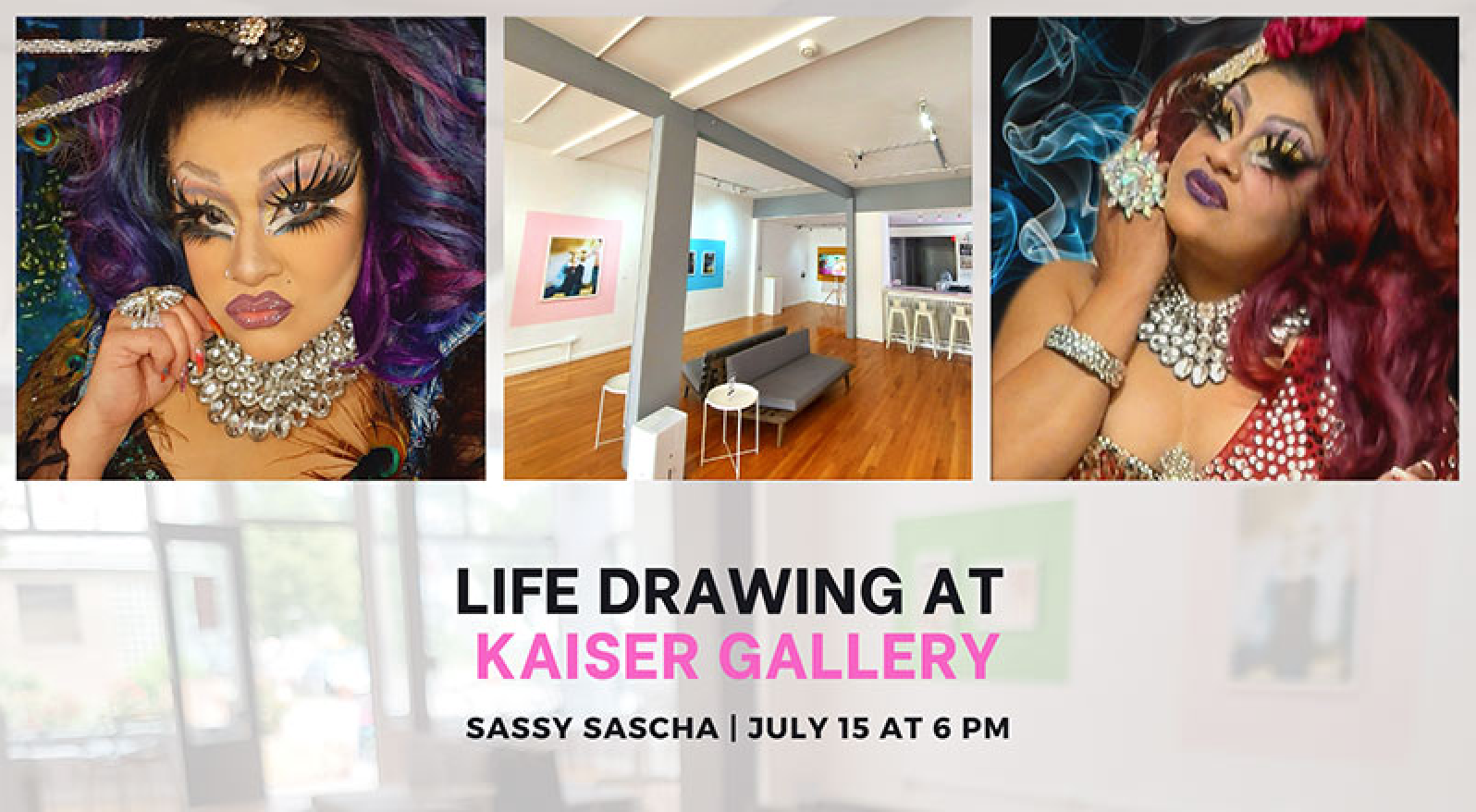 On July 15 at 6:00 pm, join Kaiser Gallery for a special open life drawing session with guest model Sassy Sascha.