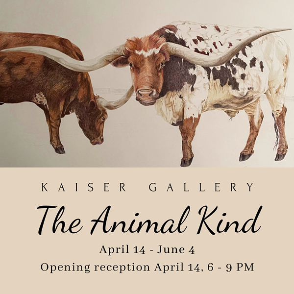 On April 14, from 6 - 9 pm, you're invited to the opening reception of 'The Animal Kind' at Kaiser Gallery! The Animal Kind, the latest group exhibition at Kaiser Gallery, looks at our human fascination with animals. The exhibition features work by ten contemporary artists from down the street to around the world. The wildly eclectic exhibition displays a wide range of artistic styles, mediums, and subject matter pertaining to animals.