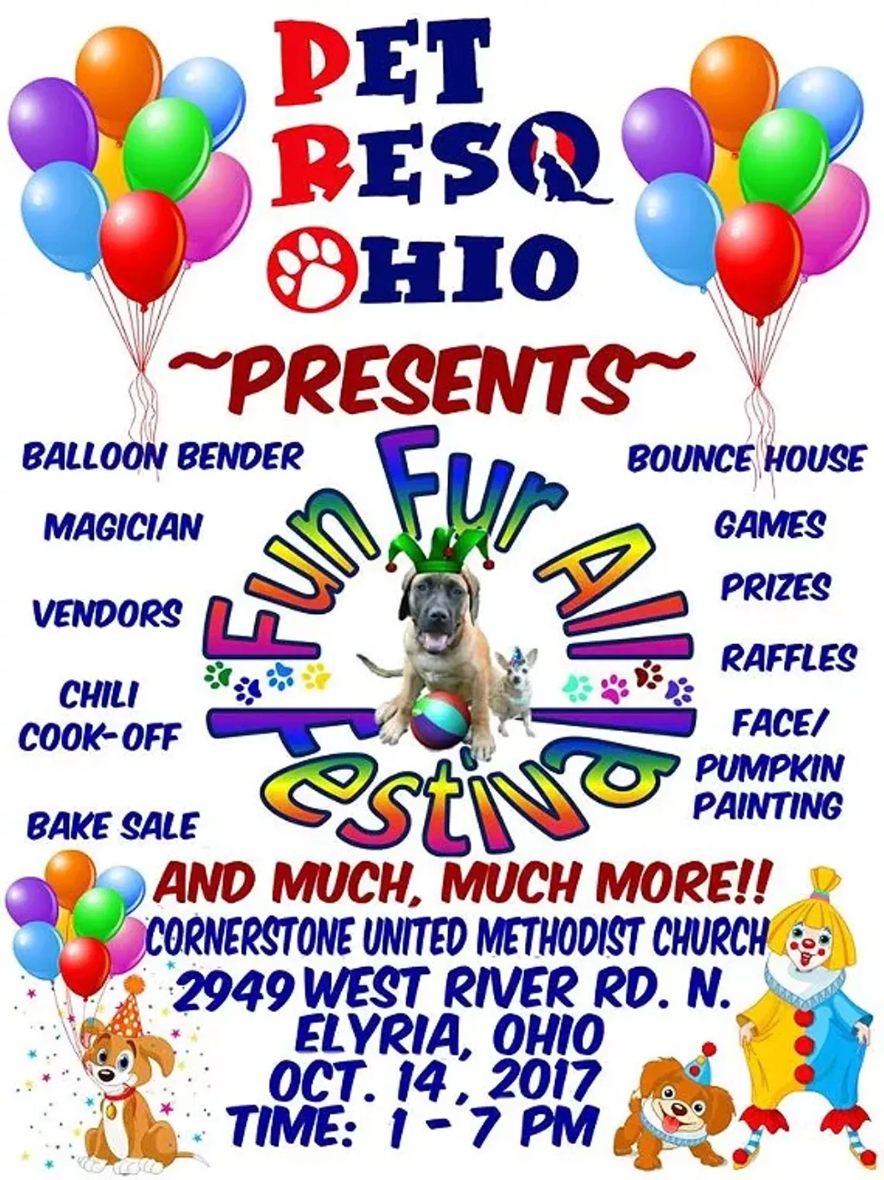 Please mark your calendar for this year’s “Fun Fur All Festival” being held at Cornerstone Church located at 2949 W River Rd N, Elyria, Ohio on Saturday, October 14, 2017 from 1pm to 7pm.