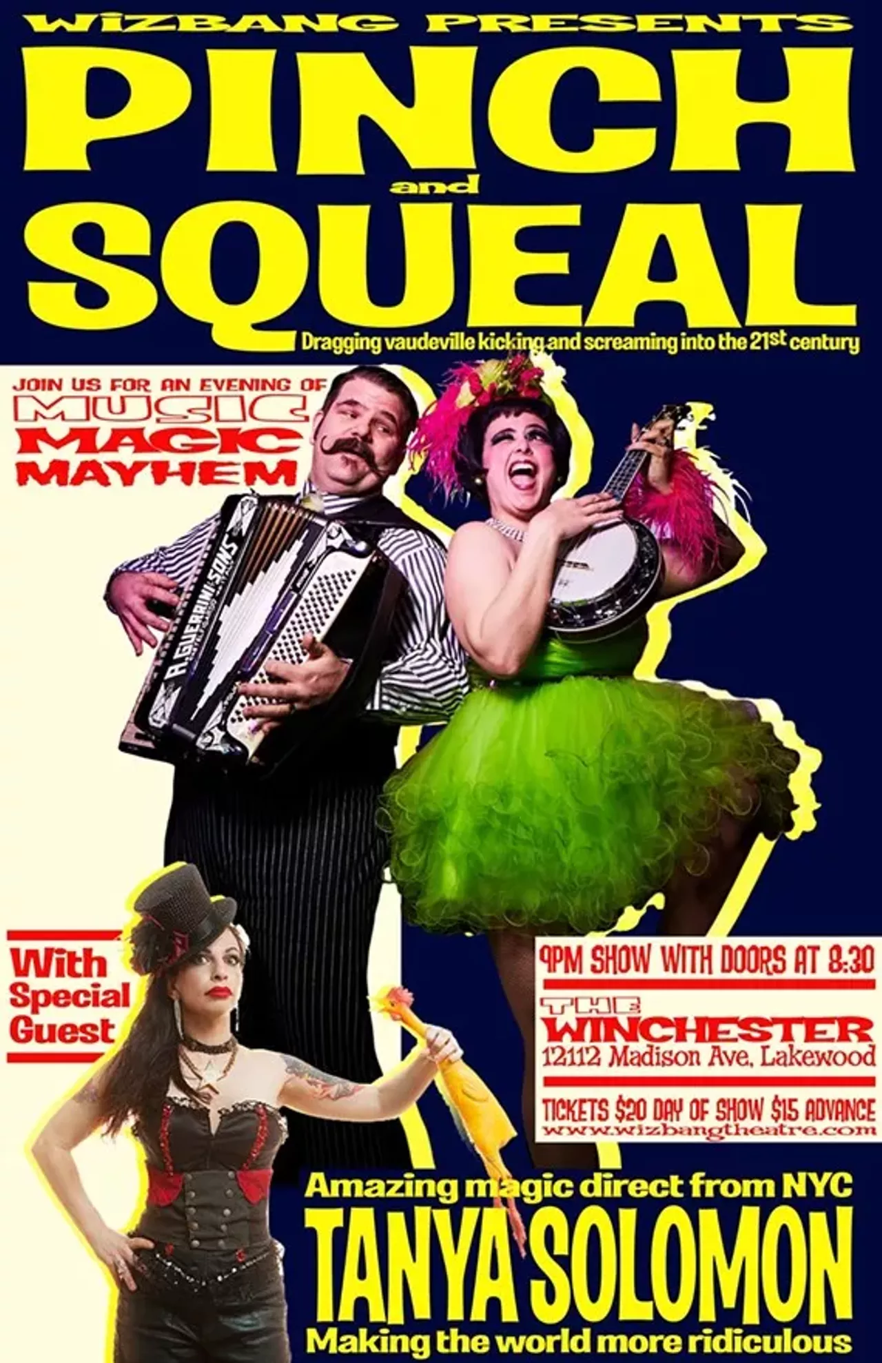 Tanya Solomon from NYC. Performing excerpts from her one-woman magic show, which includes live fish appearing from nowhere, blindfolded knife targeting, and a tribute in magic to David Lee Roth.