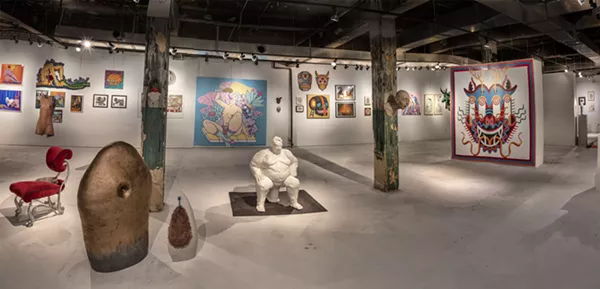 With over 60 artists on view, Hieronymus and Superchief Gallery filled the pop-up gallery Pish Posh with art that traverses everything from surrealism to pop. Artists include Aaron Johnson, Bonethrower, Ekundayo, Hoxxoh, Lauren YS, Mark Dean Veca, Parker Day, Sarah Sitkin, Swoon, Trenton Doyle Hancock, and many more contemporary artists.