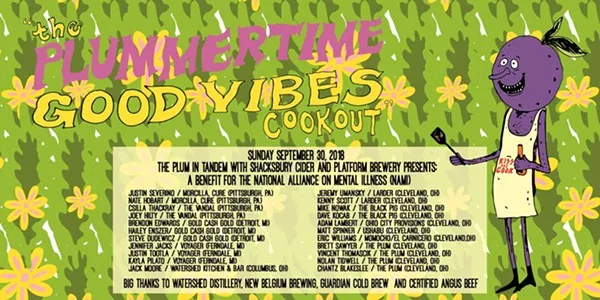 Plummertime, which will take place from 2 to 8 p.m. today, will feature numerous chefs from restaurants located in Cleveland, Detroit, Pittsburgh and Columbus. They'll man individual charcoal grills spread across the patios of both the Plum and neighbor Platform Beer. The $120 ticket price includes food (likely a protein and vegetable dish) from every station plus drinks from Watershed, Platform, New Belgium Brewing and Shacksbury Cider. Sides like potato and macaroni salads will be provided by Plum. The event is a fundraiser for the National Alliance on Mental Illness, an organization that provides mental health care services to those who don’t have insurance and can’t afford help through traditional means. (Douglas Trainer)