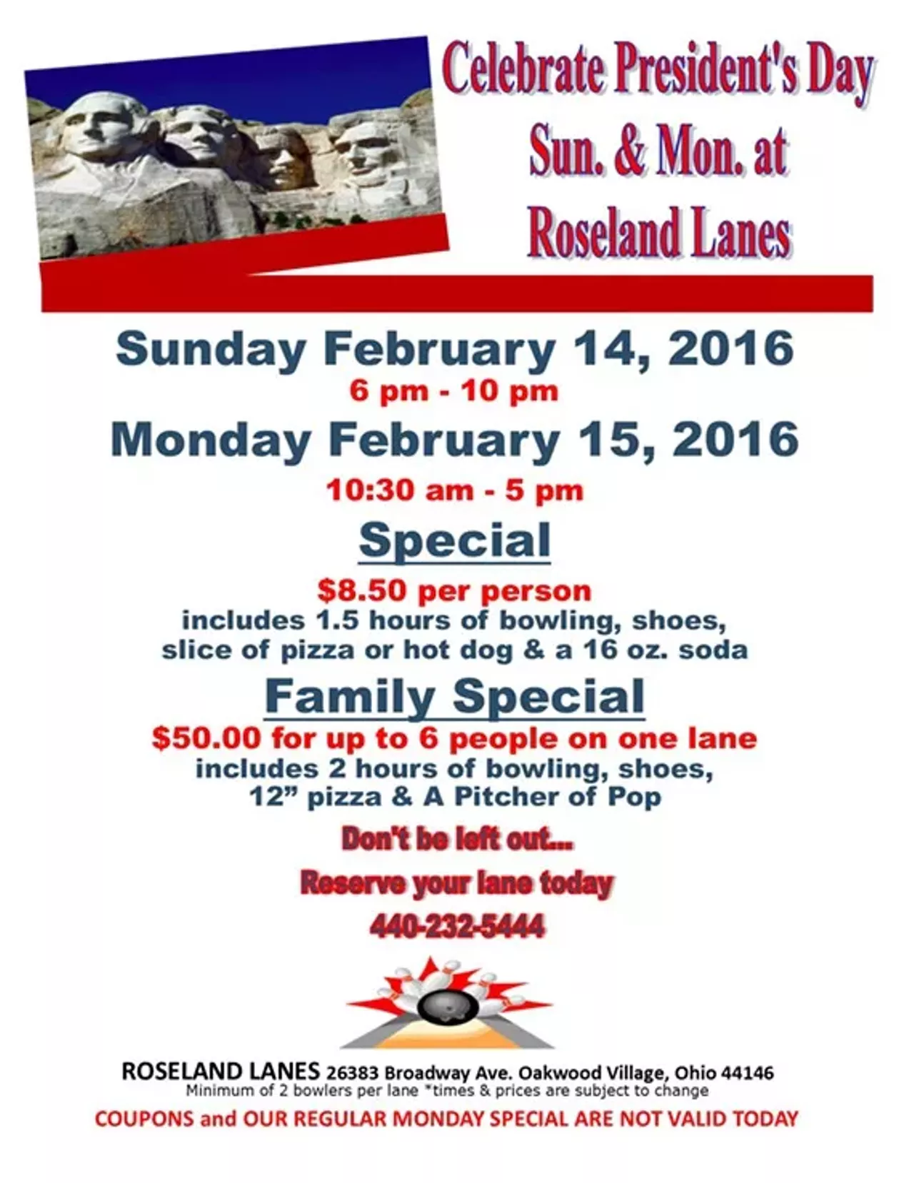 When: Sun., Feb. 14, 6-10 p.m. and Mon., Feb. 15, 10:30 a.m.-5 p.m. 2016