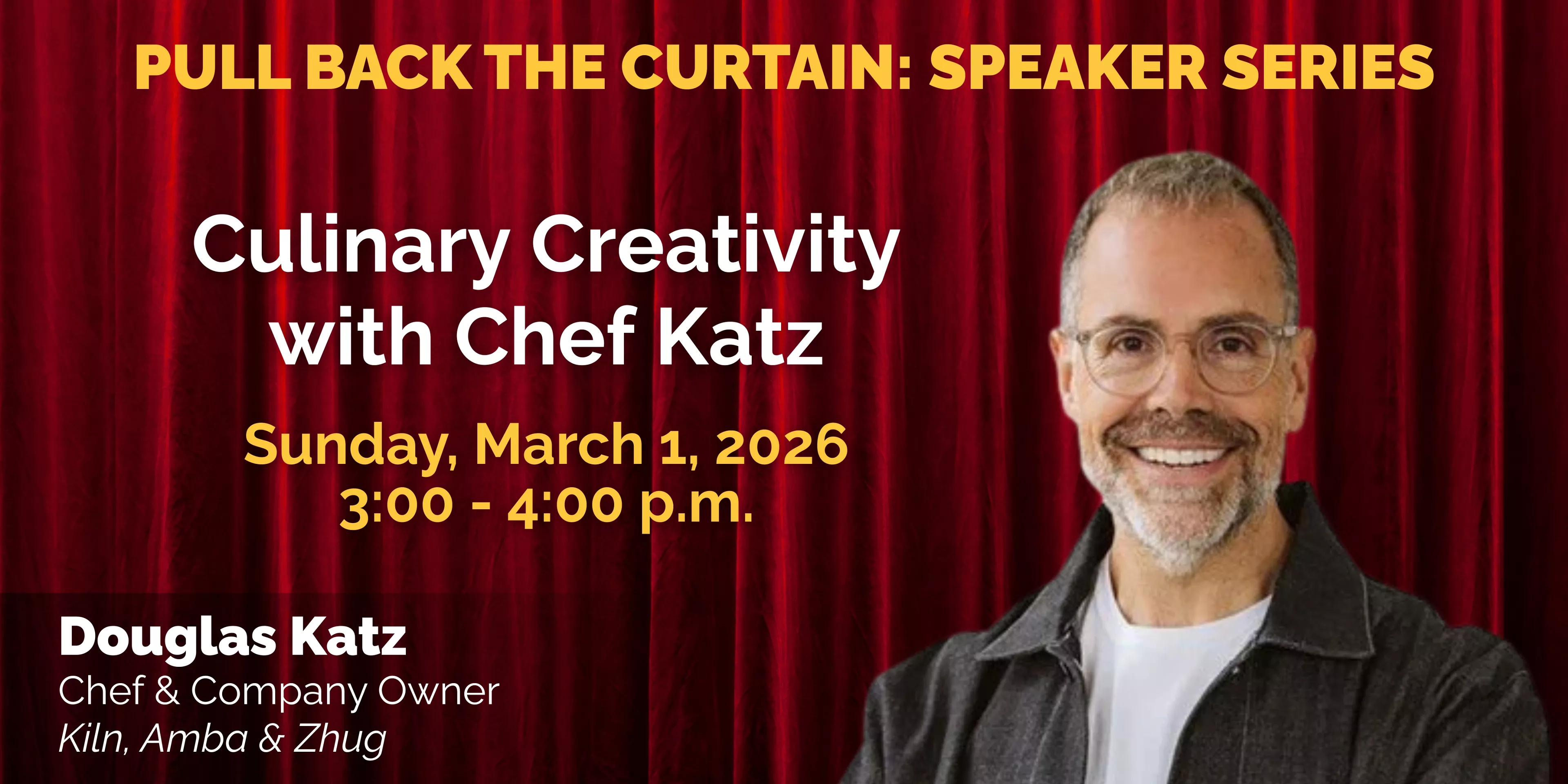 Chef Douglas Katz returns for an update on his creative culinary journey. Chef Owner of Kiln, Amba, and Zhug and James Beard Semifinalist for 2025 Outstanding Restaurateur Award, Doug is known locally and nationally for his warm, inviting hospitality and flavorful cuisine. Don’t miss this opportunity to hear more about his process and inspirations.