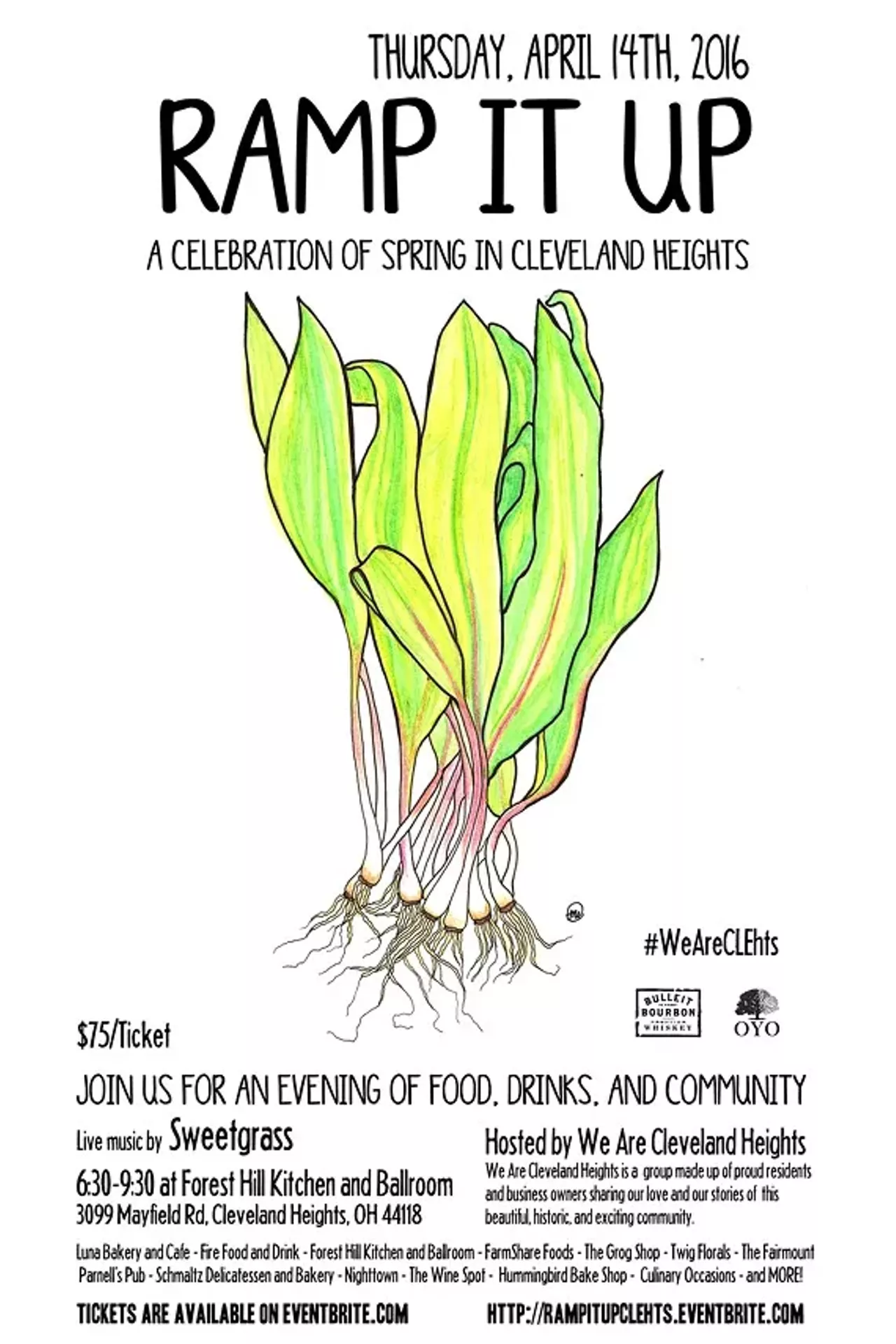 We Are Cleveland Heights presents Ramp It Up, a celebration of spring in Cleveland Heights, featuring food and drink by local vendors. The event will highlight local ingredients, community participation, and live music by Sweetgrass.