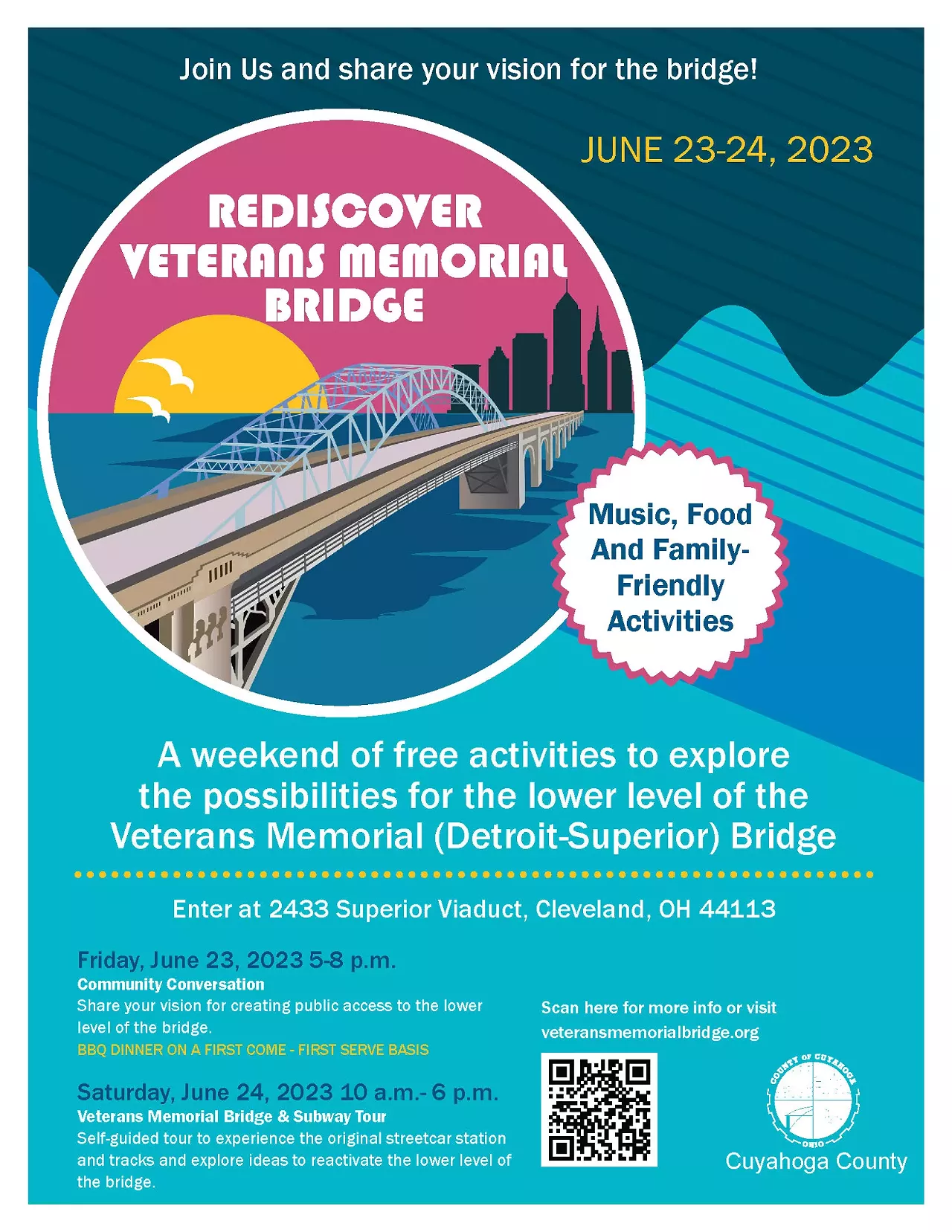 A weekend of free activities to explore the possibilities for the lower streetcar level of the Veterans Memorial (Detroit Superior) Bridge.