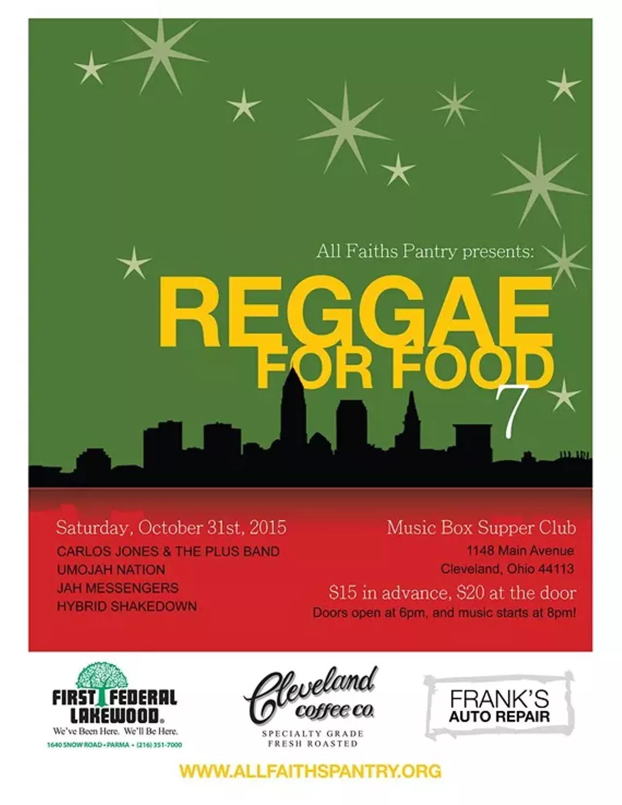 Carlos Jones and the PLUS Band, Umojah Nation, Jah Messengers, and Hybrid Shakedown all donate their talents again to help support All Faiths Pantry deliver free groceries to low income seniors and mobility challenged folks! Costume contest! 50/50 raffle!