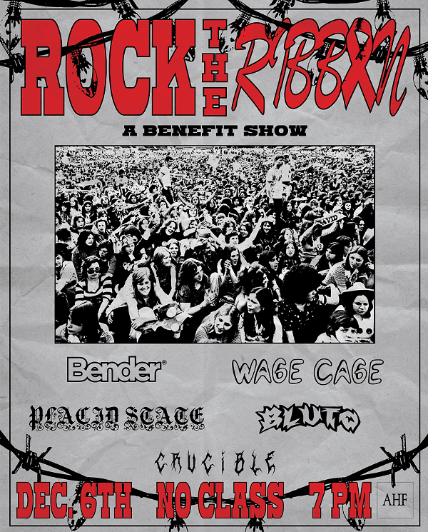 ROCK THE RIBBON in honor of World AIDS Day - A fundraiser for The AIDS Taskforce of Greater Cleveland featuring performances by: Crucible, Placid State, Wage Cage, Bluto, & Bender.