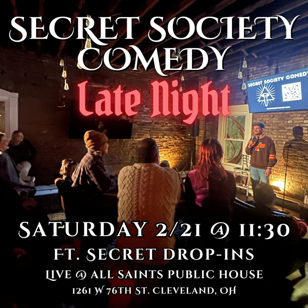 Hosted in an intimate upstairs room at All Saints Public House in Battery Park, the show feels like a late-night hang and has become a must-stop spot for comedians passing through Cleveland!