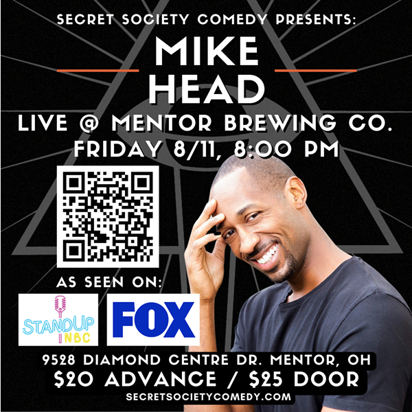 Secret Society Comedy returns to Mentor Brewing Co. to turn it into a comedy club featuring headliner Mike Head (StandUp NBC, Laughs On Fox). An internationally touring headliner, Mike's personable style and relatable stories about fatherhood will have you rolling as you enjoy Mentor Brewing's best beers at the end of a long work week.
