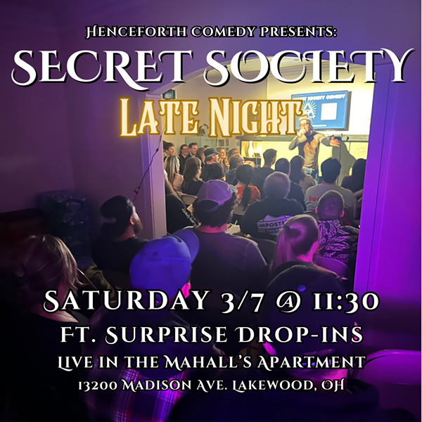 Secret Society Late Night Comedy is an underground late-night comedy show featuring nationally touring comedians, unannounced surprise drop-ins, and Cleveland’s funniest performers!