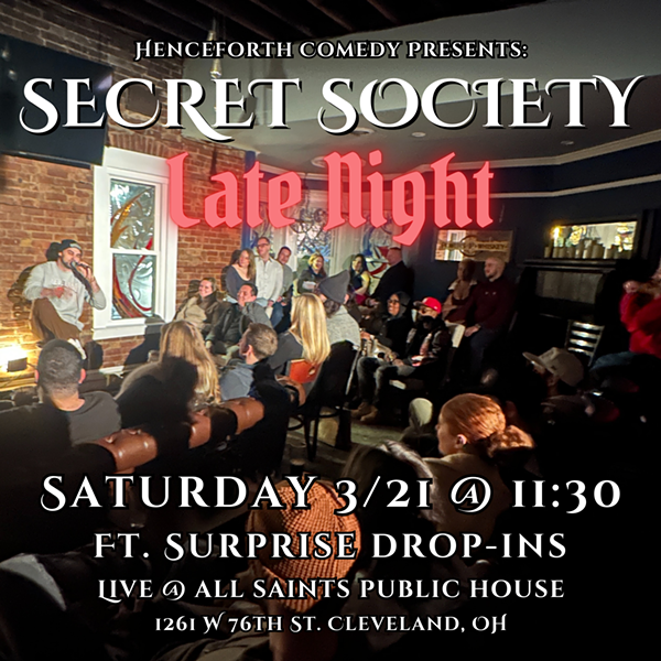 Secret Society Comedy Late Night is an after-hours, late-night comedy show featuring nationally touring comedians and unannounced surprise guests—so you never know who you’ll see!