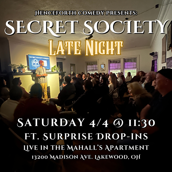 Secret Society Late Night Comedy is an underground late-night comedy show featuring nationally touring comedians, unannounced surprise drop-ins, and Cleveland’s funniest performers!