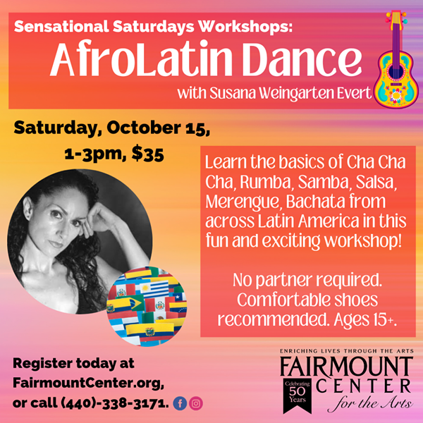 With much fun and compassion Susana (a Latina born and raised) teaches the fundamental steps to authentic AfroLatin Rhythm Dance such as Cha Cha Cha, Rumba, Samba, Salsa, Merengue, and Bachata. Basic steps and combinations are taught in order to comprehend and feel these wonderful rhythms. The workshop features authentic music from Cuba, Brazil, Colombia, and Mexico.