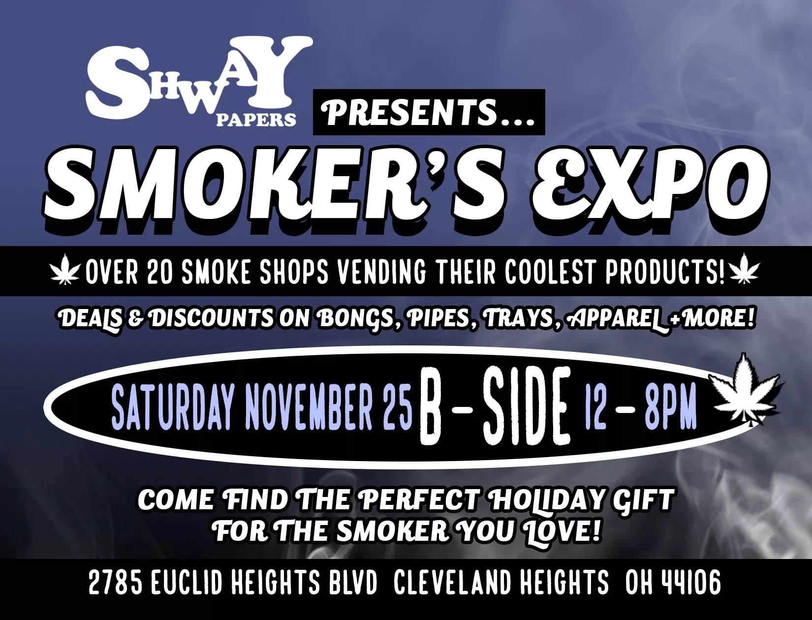 Shway papers presents The Smokers expo.Deals & Discounts on Bongs.Pipes,Trays,Apparel and more. Come find the perfect gift for the smoker in your family.
