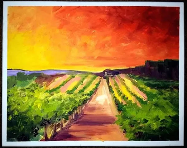 While sipping on your choice of cider, Katie Harding of IntuArt Studio will take you through turning your blank canvas into a unique vineyard landscape with all the textures and colors of sunset.