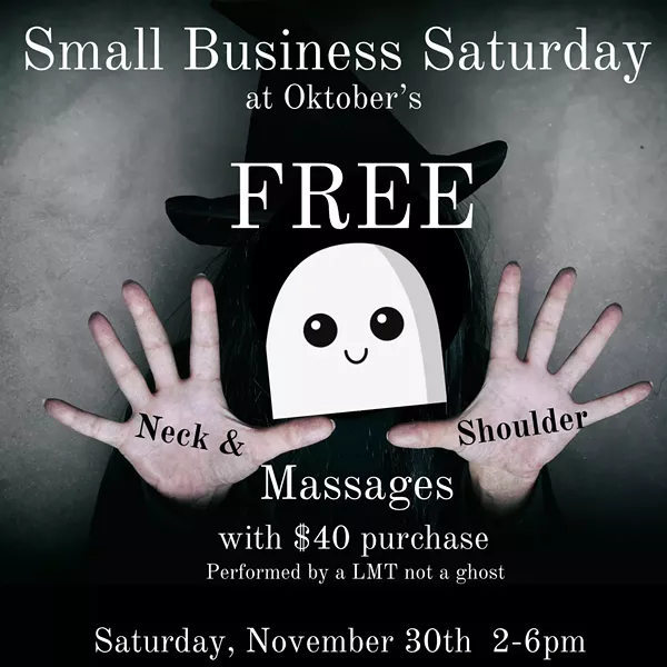 On Small Business Saturday we really appreciate our customers shopping with us so we like to give back! Our friend and Licensed Massage Therapist, Julia, will be offering FREE neck & shoulder massages to anyone who spends over $40 and is interested! It’s really a great way to cap off a fun shopping wknd!