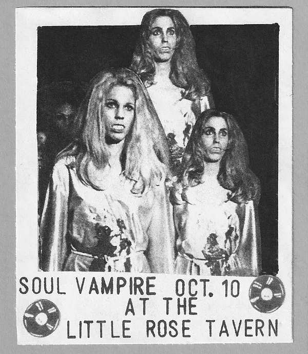 Time to dust off your finest ghoulish attire. SOUL VAMPIRE RETURNS to the Little Rose Tavern to kick off the Halloween season! Dance to creepy 45RPM records. Costume Contest. Guest DJs. Monster Mash plays at Midnite. Popcorn! Vampyros Lesbos & Blacula films. Haunted Art Gallery. Spooky surprises and as always, FREE FANGS at the door.