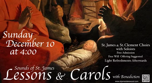 The combined St. James and St. Clement choirs plus soloists will perform carols between short scripture readings on the promise of the Nativity. We hope this will be a joyous,