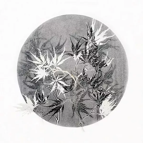 Ornamental Containment, a series of new monotype prints by Deborah Pinter, is showcased in the spotlight gallery beginning Friday, September 15. In the series, Deborah continues her exploration of directly creating prints from natural elements such as leaves, branches and stones, while using the creative restraint of circular compositions on square paper.