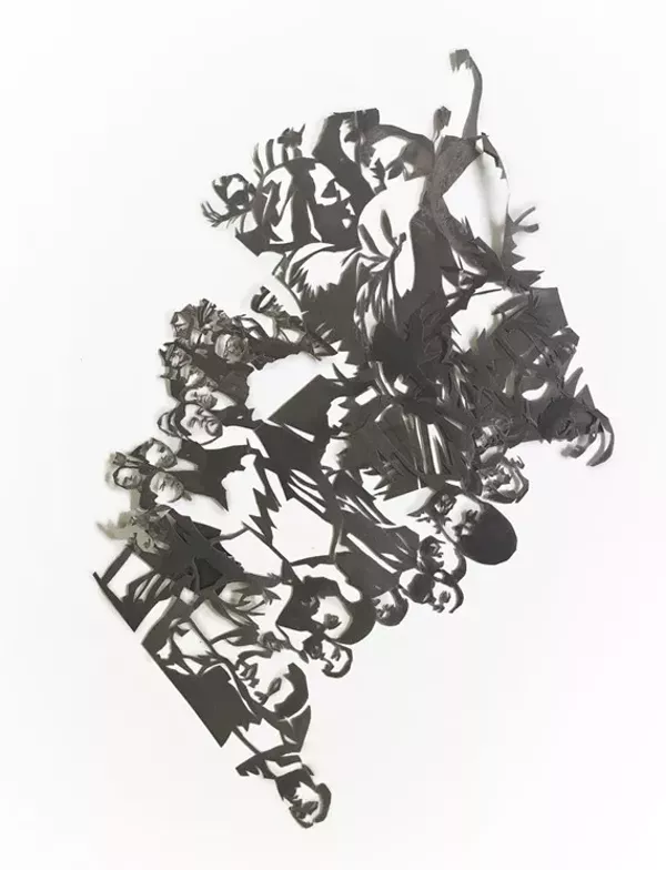 New collages by CIA faculty Sarah Kabot takes over the Spotlight space, with an opening reception on Sept. 16. For the year 2015, Kabot collected all of the front-page sections of The New York Times Sunday edition. These photographically documented events were deemed significant enough to be reported in a global newspaper of record, yet less than a year later, most have slipped out of the headlines. In her series, NYT 2015, Kabot collages together photographs of people printed in a single edition from that year, creating delicate cut-out compositions that encourage viewers to carefully look at the remains.